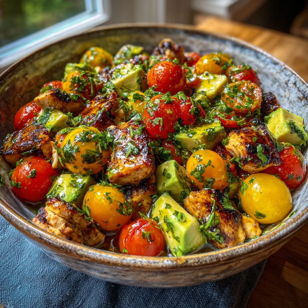 Furthermore, the visual appeal of this dish is simply undeniable. We eat with our eyes first, and this salad is a kaleidoscope of gorgeous, appetizing colors. You have the golden-brown char of the chicken, the deep, vibrant greens of the avocado and parsley, and the popping reds and bright yellows of the cherry tomatoes. It looks like summer in a bowl, bringing a burst of sunshine to your dining table no matter what time of year you make it.