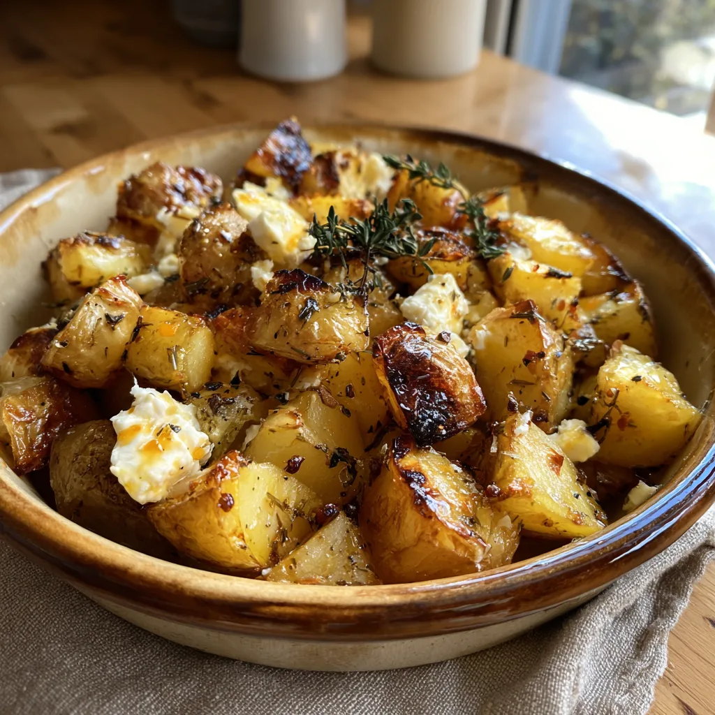 This dish captures the essence of the Mediterranean diet. It focuses on simple, high-quality ingredients prepared in a way that highlights their natural flavors. We are talking about golden, crispy-skinned potatoes, roasted until tender, and then paired with the salty, creamy punch of feta cheese. The addition of fresh thyme and a hint of lemon elevates the entire profile, making it bright enough for a summer barbecue yet cozy enough for a winter roast.
