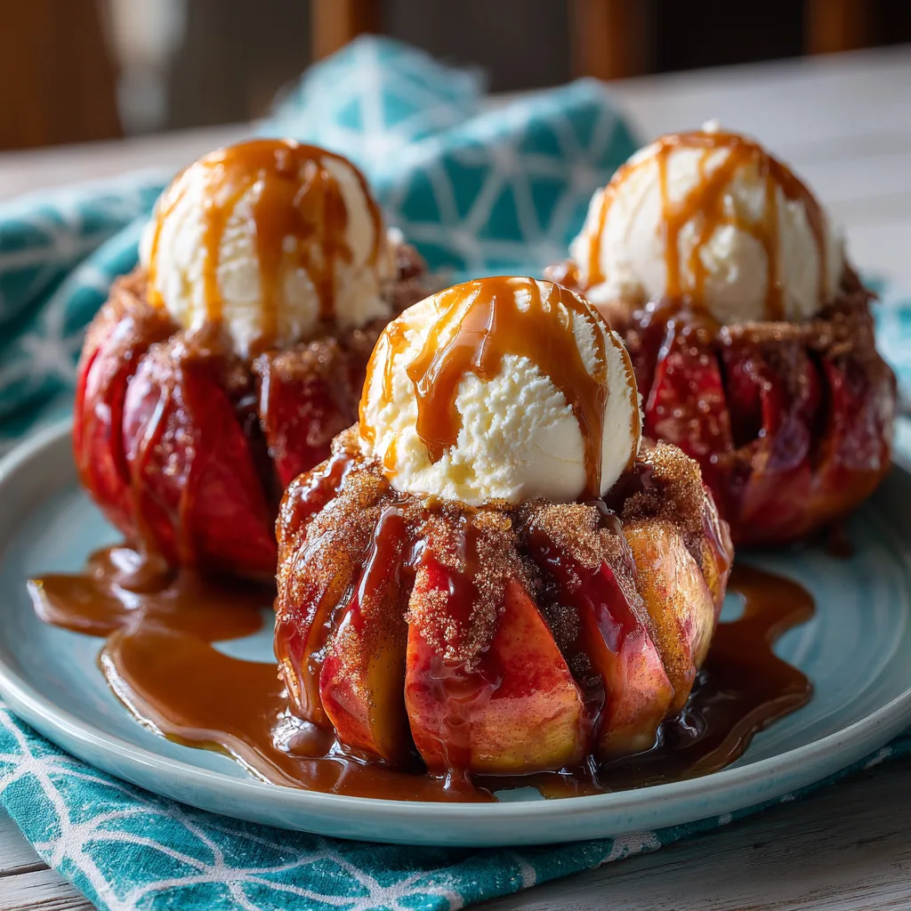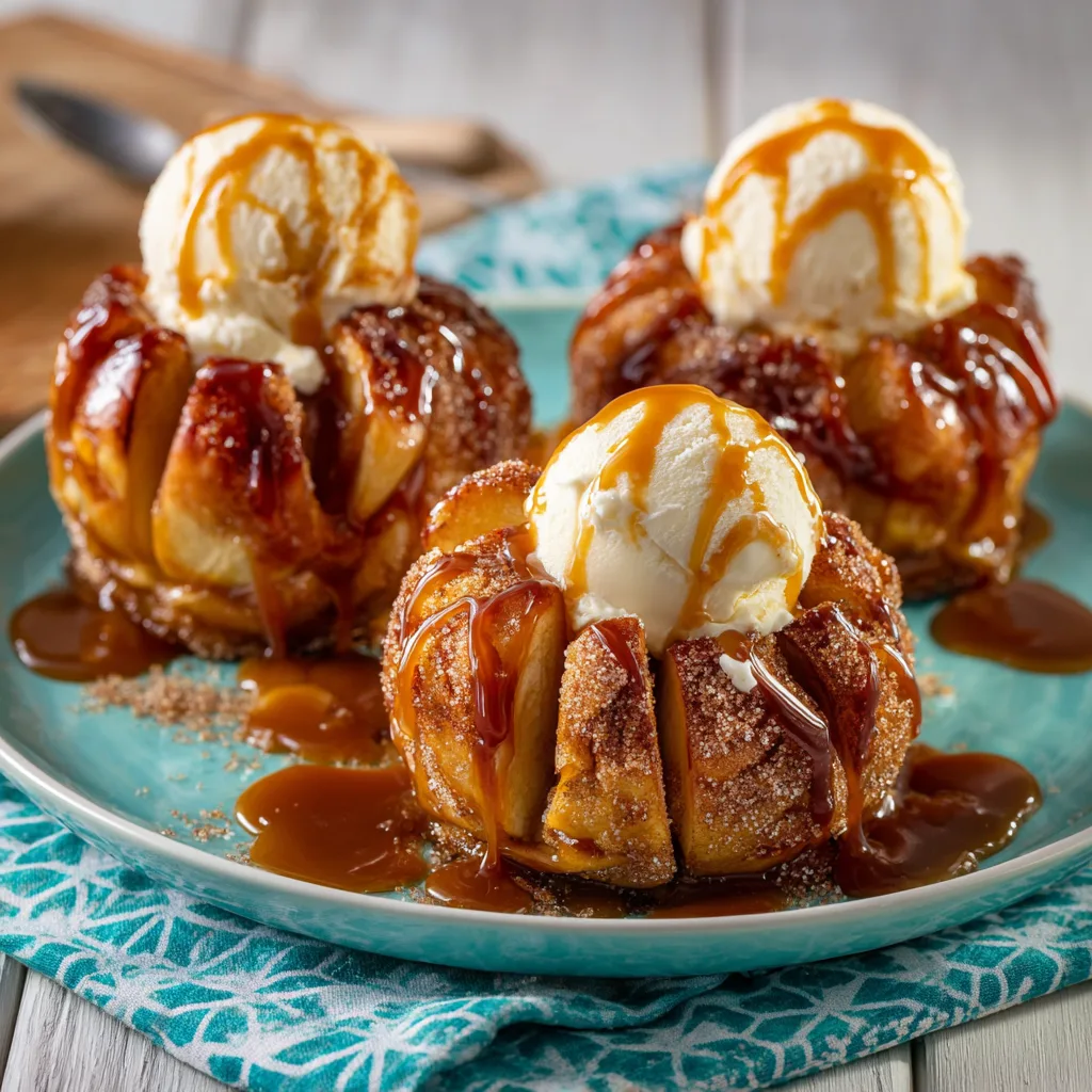 Bloomin’ Apples are the ultimate testament to the idea that you eat with your eyes first. They transform a humble piece of fruit into a dramatic, restaurant-quality dessert that requires surprisingly little effort. With their caramelized edges, tender spiced interiors, and the luxurious pairing of melting vanilla ice cream and warm caramel, they capture the very essence of fall in every single bite. Grab your knife, choose your favorite apples, and get ready to impress everyone at your table with this spectacular sweet treat.