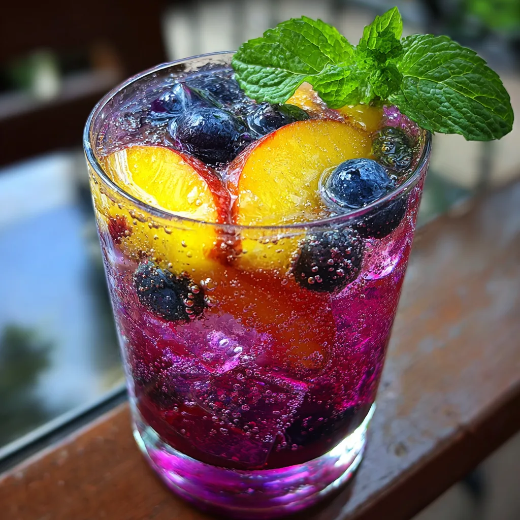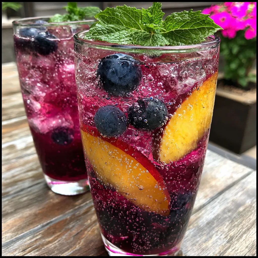 A refreshing and vibrant summer cocktail featuring fresh muddled blueberries, ripe peaches, vodka, and sparkling water. Perfect for parties and warm afternoons.