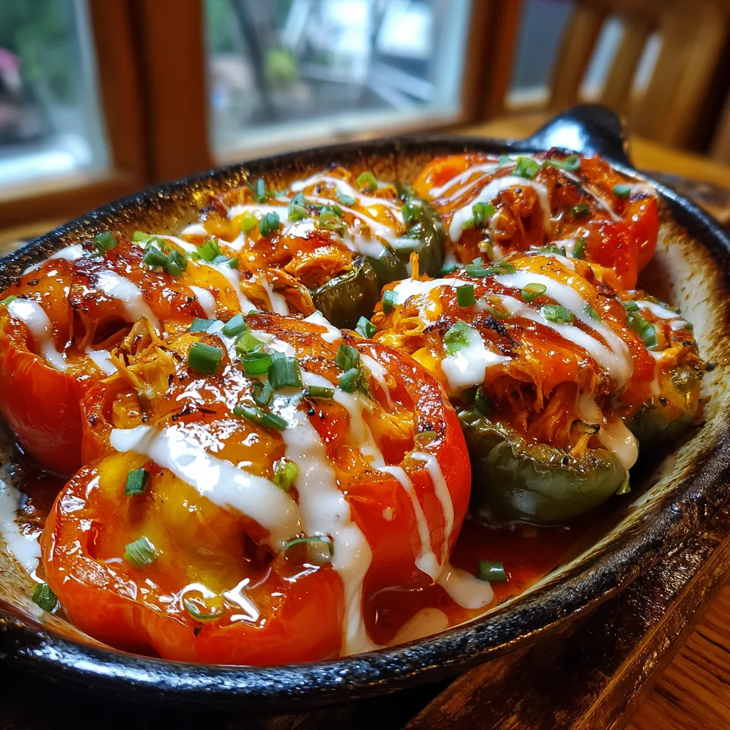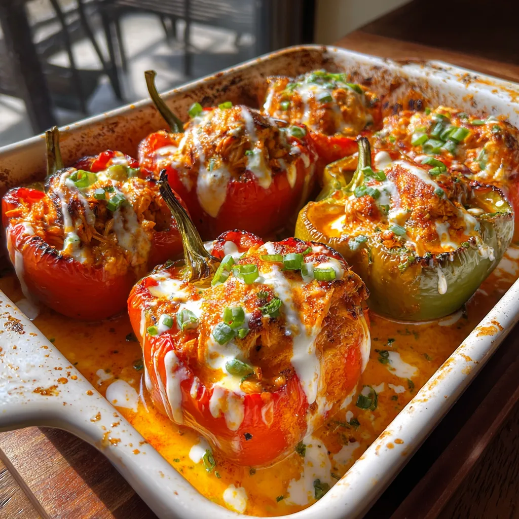 Imagine tender, roasted bell peppers acting as the perfect vessel for a creamy, spicy, savory mixture of shredded chicken drenched in buffalo sauce. Topped with a cool drizzle of ranch and the fresh bite of green onions, every bite is a balance of heat and comfort. It’s the kind of meal that feels indulgent and “naughty” but leaves you feeling energized and satisfied.