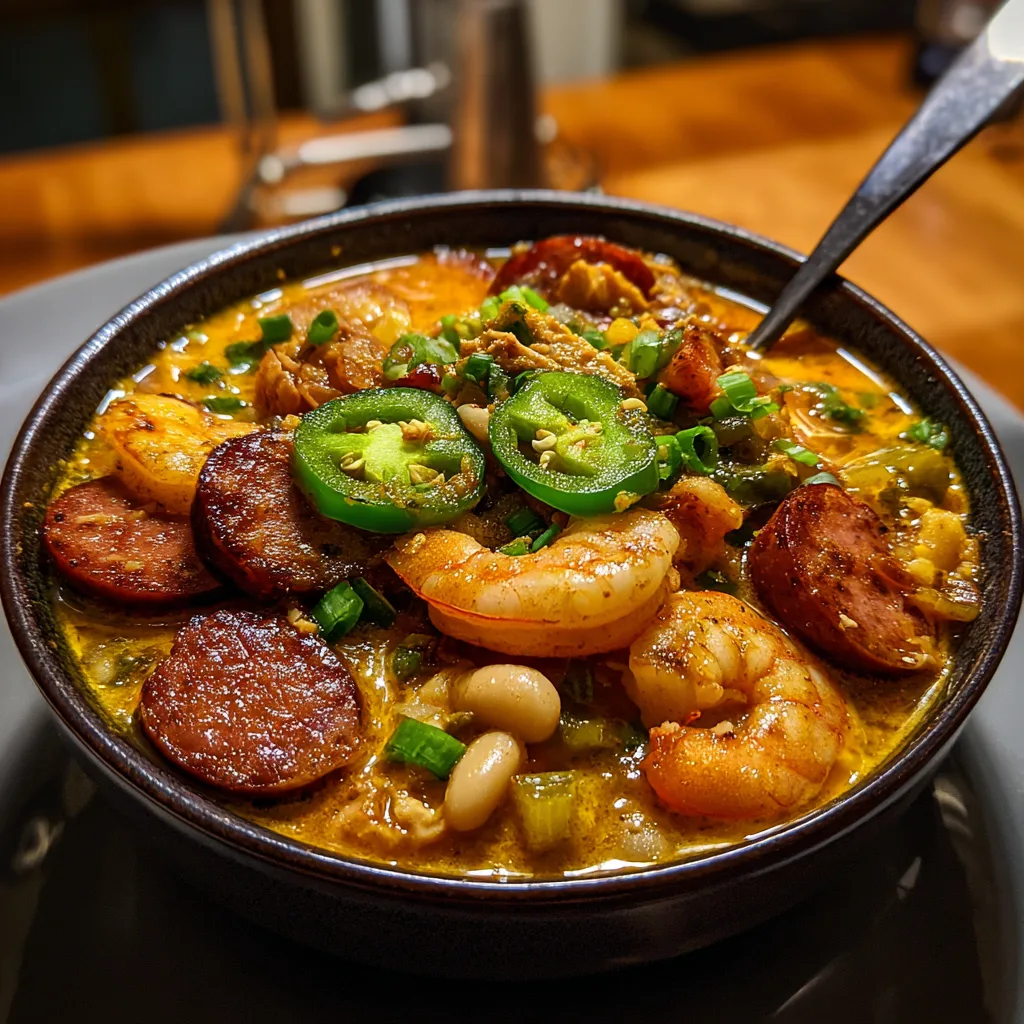 - Triple Protein Powerhouse: Unlike standard chilis that rely on just beef or just chicken, this recipe utilizes chicken, spicy Andouille sausage, and sweet shrimp. This trio provides varying textures—shredded, chewy, and snappy—making every spoonful interesting.