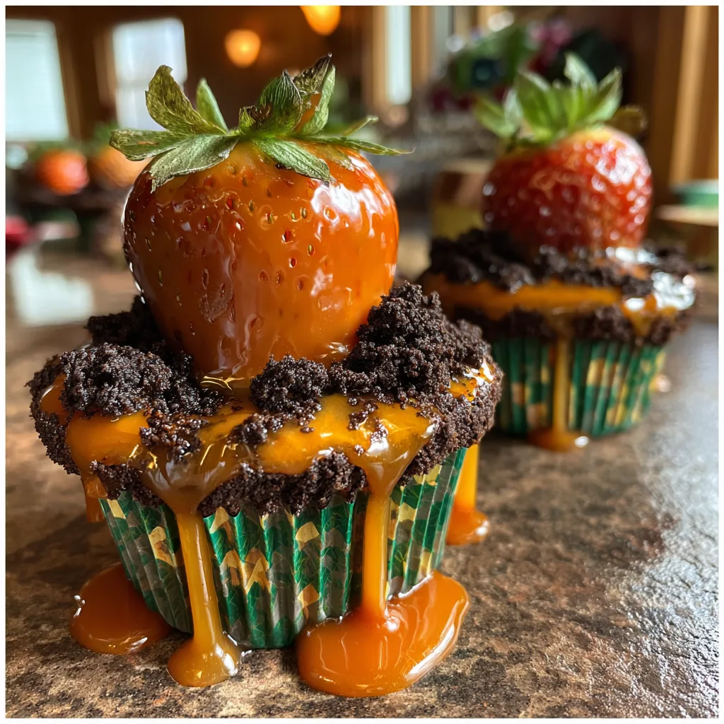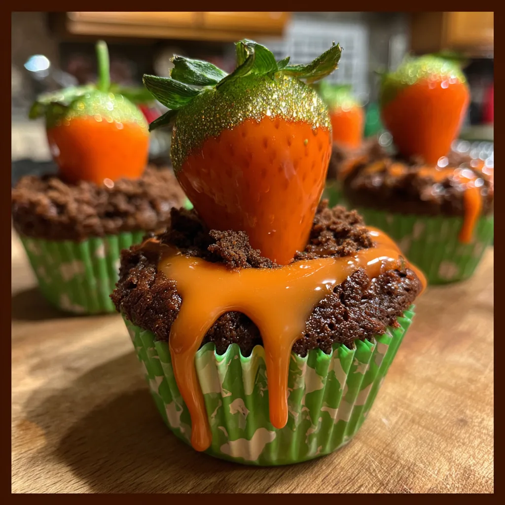 The concept of “dirt cups” is a nostalgic classic—crushed chocolate cookies and pudding layered with gummy worms. This recipe takes that beloved childhood memory and elevates it into a sophisticated and incredibly adorable cupcake. We are replacing the simple pudding layer with a luxurious, velvety cream cheese frosting and swapping the gummy worms for something far more clever: fresh strawberries dipped in orange chocolate to resemble perfectly formed, miniature carrots. It’s a whimsical, high-gloss treat that will make your guests ask, “Is that *really* a strawberry?” Let’s dive into how to create this visual and sensory feast.