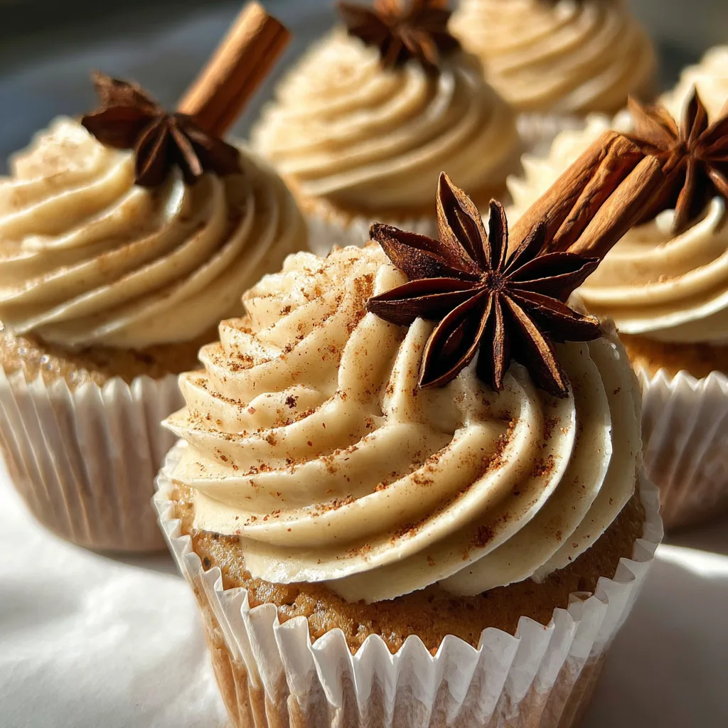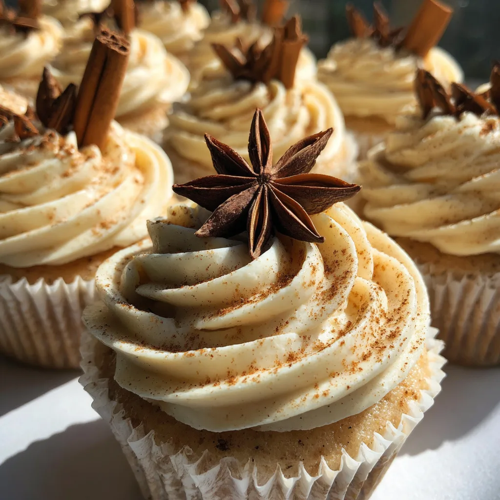 13. Garnish: Dust the tops lightly with extra ground cinnamon. Place one whole star anise and one cinnamon stick into the frosting of each cupcake for that rustic, professional look.