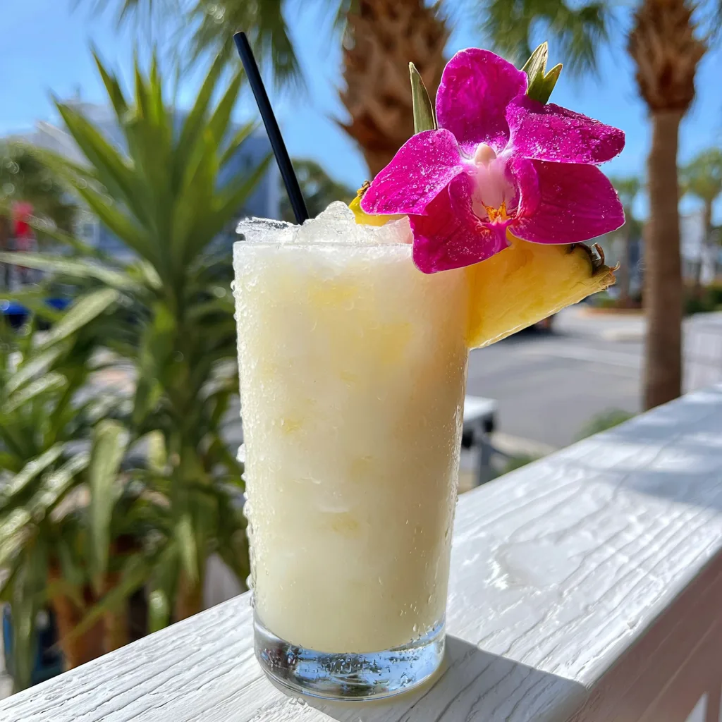 - – Garnishes: A fresh wedge of pineapple, a vibrant tropical flower (like an orchid), and a high-quality maraschino cherry. A fun straw and a paper umbrella are highly encouraged for the full aesthetic experience.