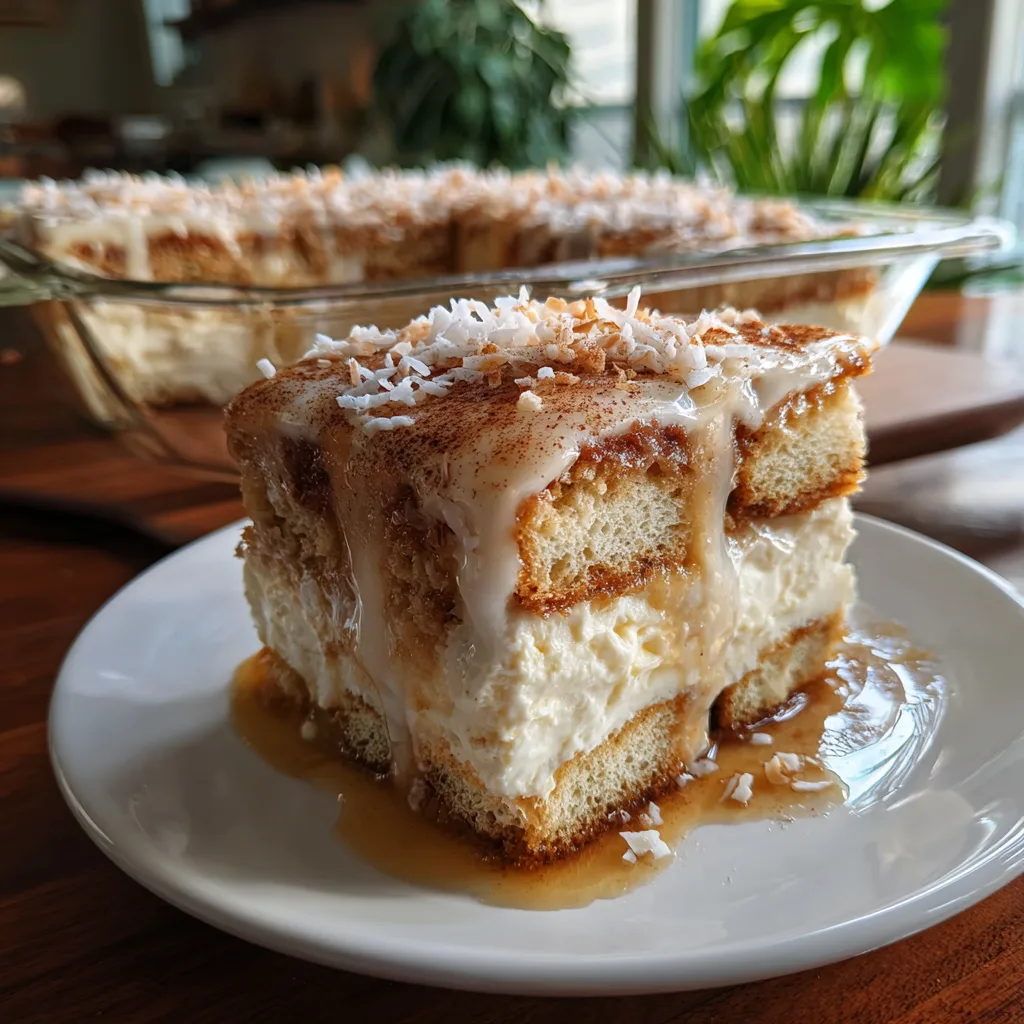 A luscious no-bake dessert fusing Puerto Rican Coquito flavors (coconut, rum, cinnamon) with the creamy layered structure of Italian Tiramisu.