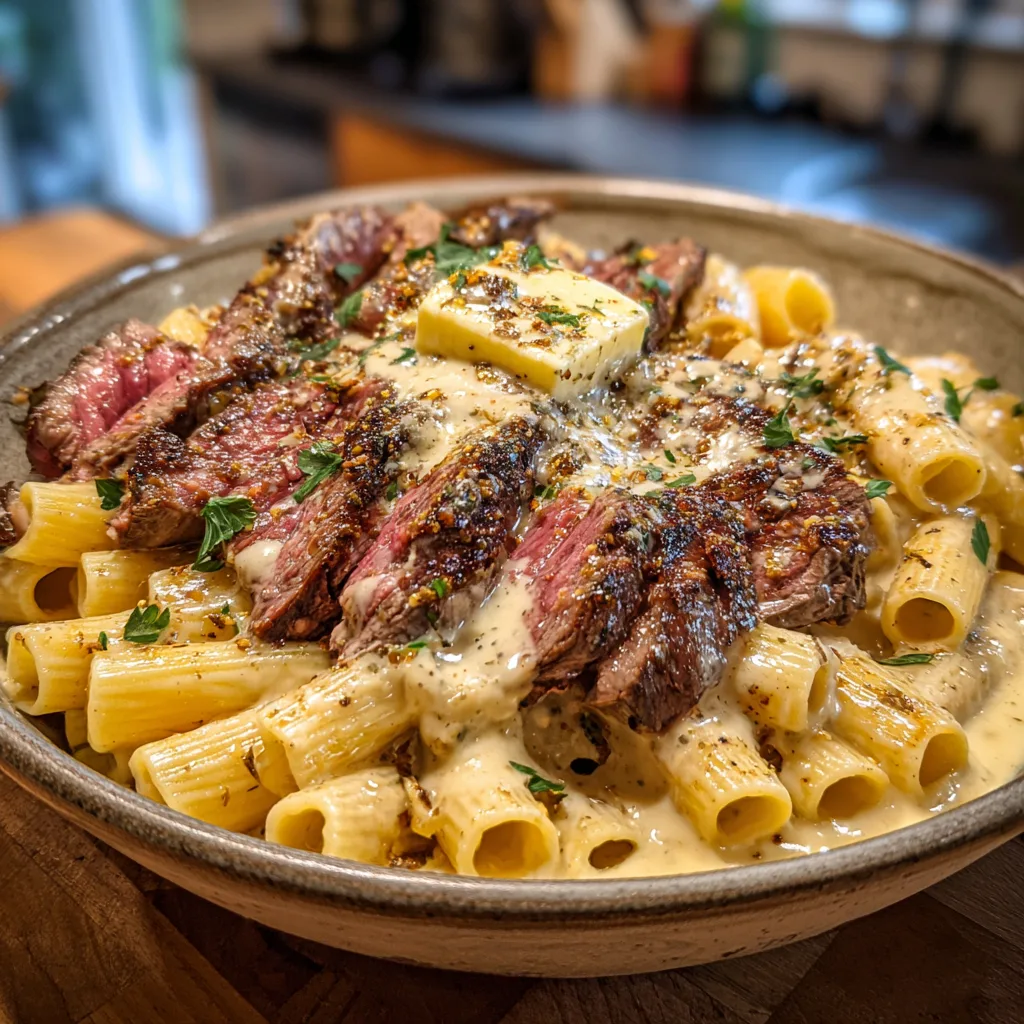 Creamy Garlic Butter Steak Rigatoni Recipe