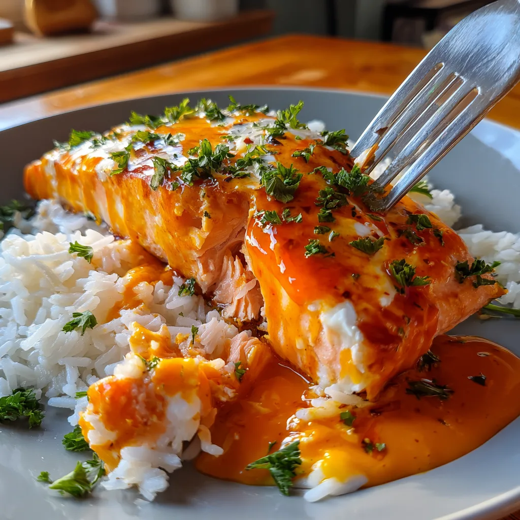 - Return salmon to the pan, spooning sauce over the top. Simmer for 1 minute to warm through.
