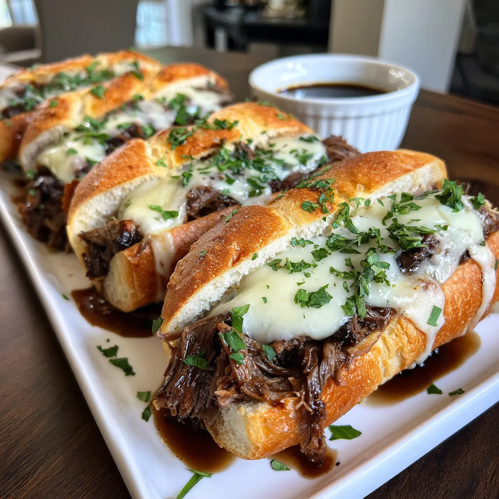 - Serve: Close the sandwiches, sprinkle with fresh chopped parsley if desired, and serve immediately alongside individual small bowls or ramekins of the hot, savory au jus for dipping.