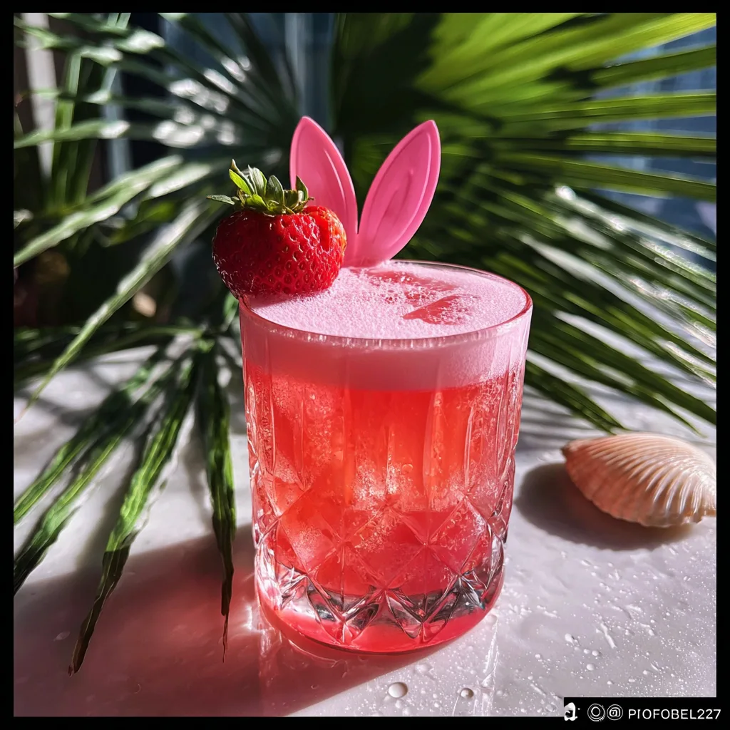 - Garnish and Serve: Take a fresh, plump strawberry, make a small slit in the bottom, and slide it onto the rim of the glass. Finally, tuck the playful pink bunny ears into the top of the drink. Serve immediately while icy cold!