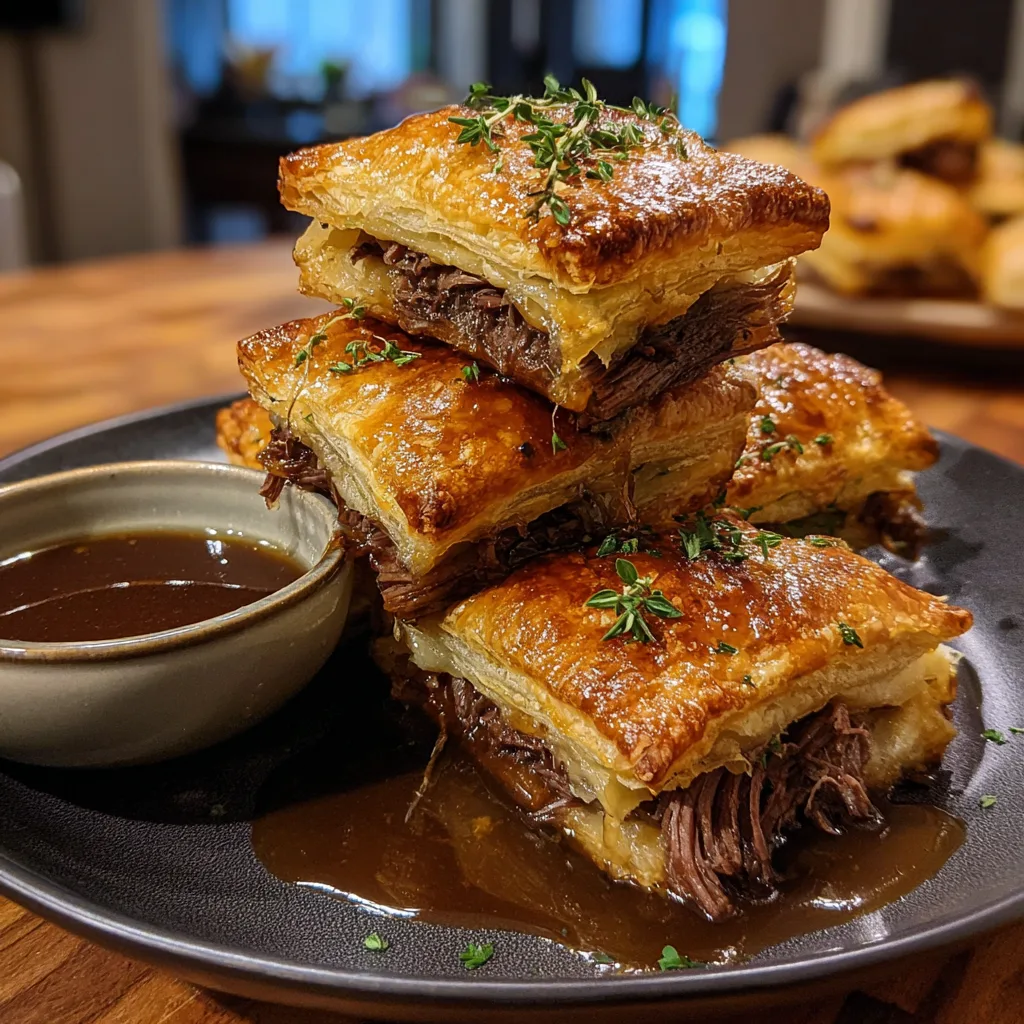 The Spicy Horseradish Kick: French dips and horseradish are best friends. Spread a thin layer of creamy horseradish sauce on the inside of the top layer of puff pastry before sealing it. This adds a fantastic, sharp bite that cuts through the richness of the beef.