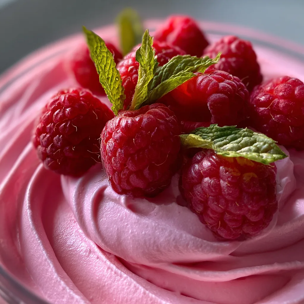 - Garnish and Serve: Just before serving, top each glass of mousse with a few reserved fresh raspberries and a sprig of fresh mint. Serve immediately and enjoy the light, fruity perfection!