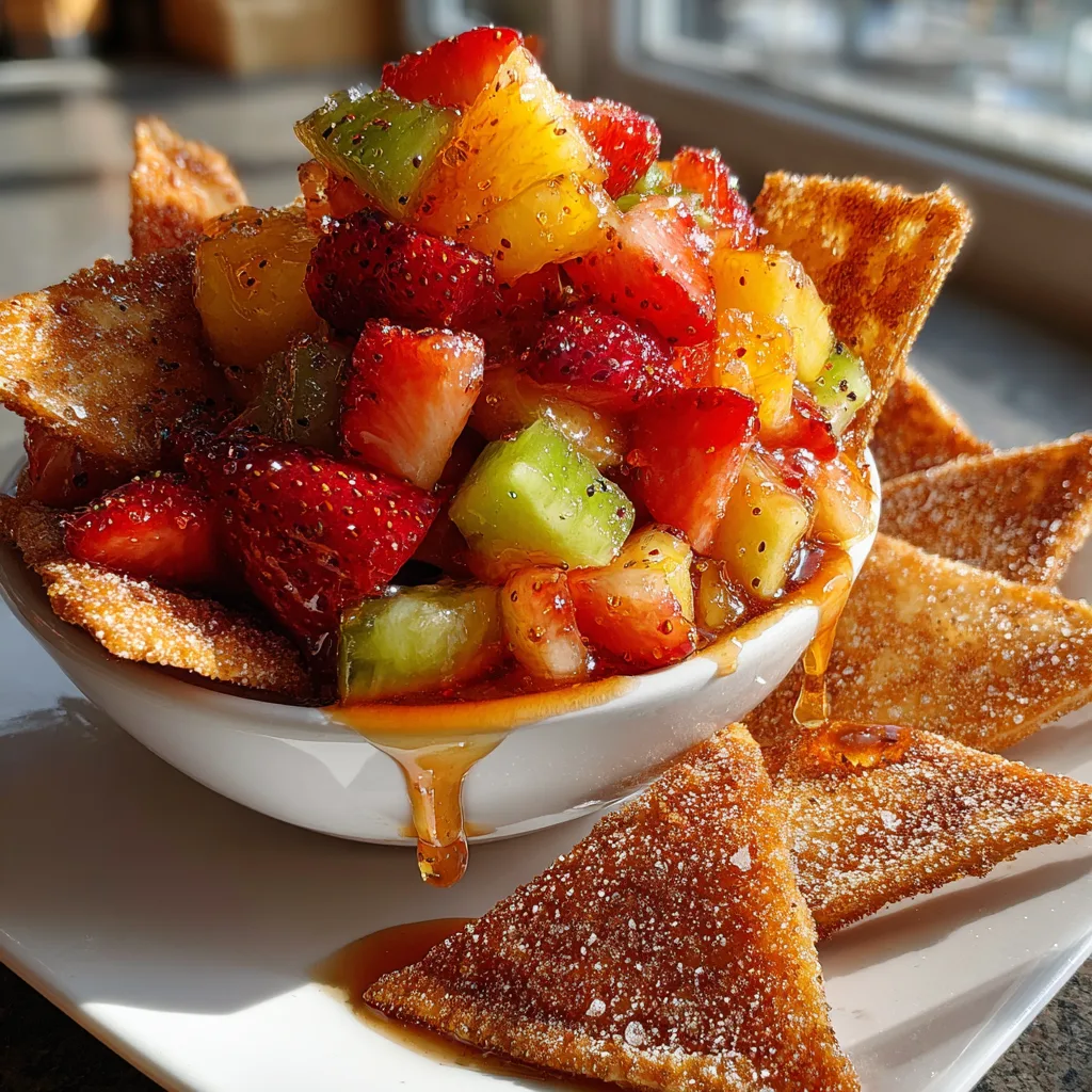 The brilliance of this fruit salsa lies in its incredible balance of textures and flavors. On one side, you have the salsa: a cool, juicy, sweet, and slightly tart medley of fresh fruit. Every spoonful bursts with the bright, sunny flavors of summer. On the other side, you have the chips: warm, crispy, shatteringly flaky, and coated in comforting, aromatic cinnamon sugar. When you scoop that cold, wet salsa onto the sturdy, crunchy chip, it creates a culinary harmony that is simply addictive.
