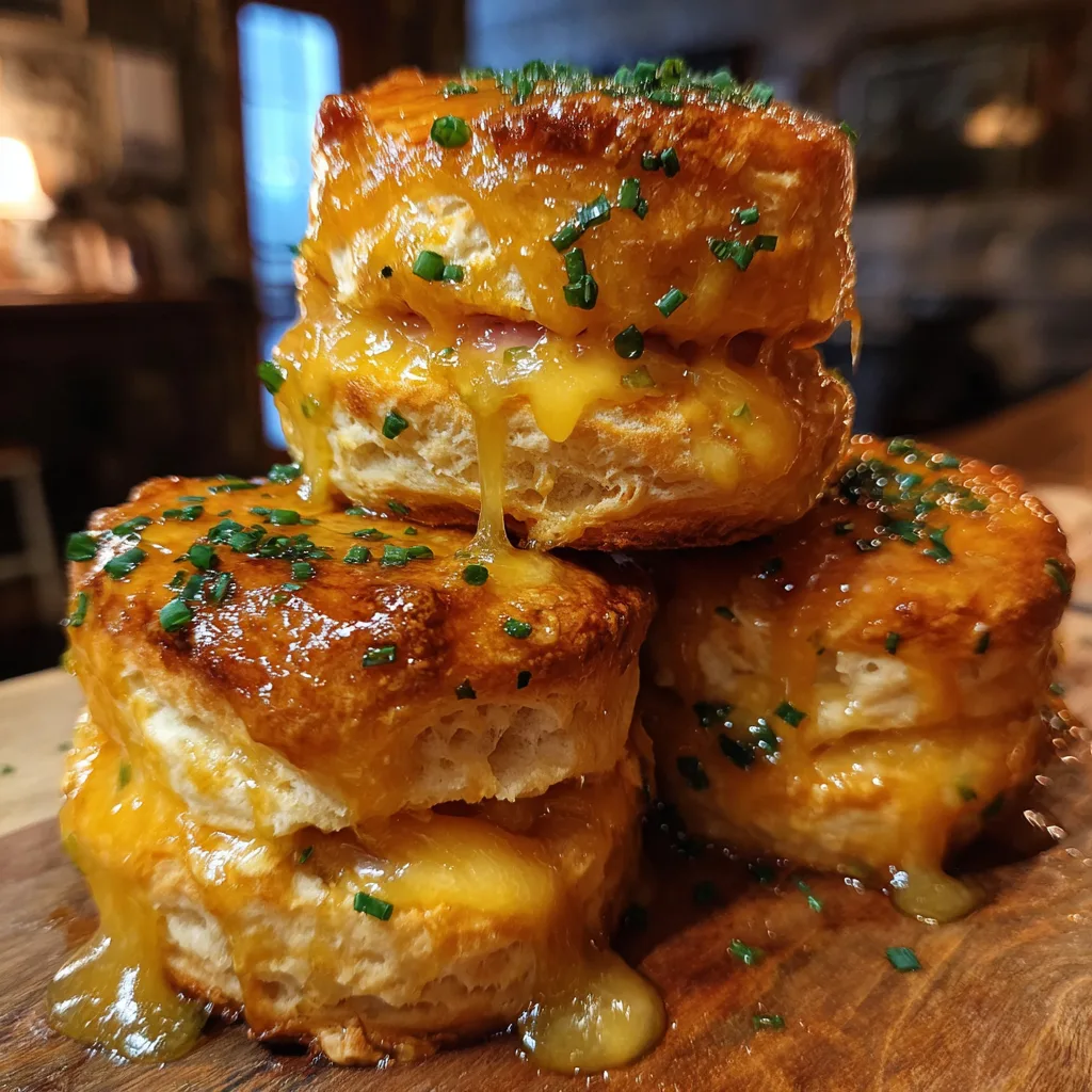 8. Melt the Cheese: Place the assembled biscuit sandwiches onto a baking sheet. Return them to the 450°F oven for 3 to 5 minutes, just until the cheese is completely melted and gooey.