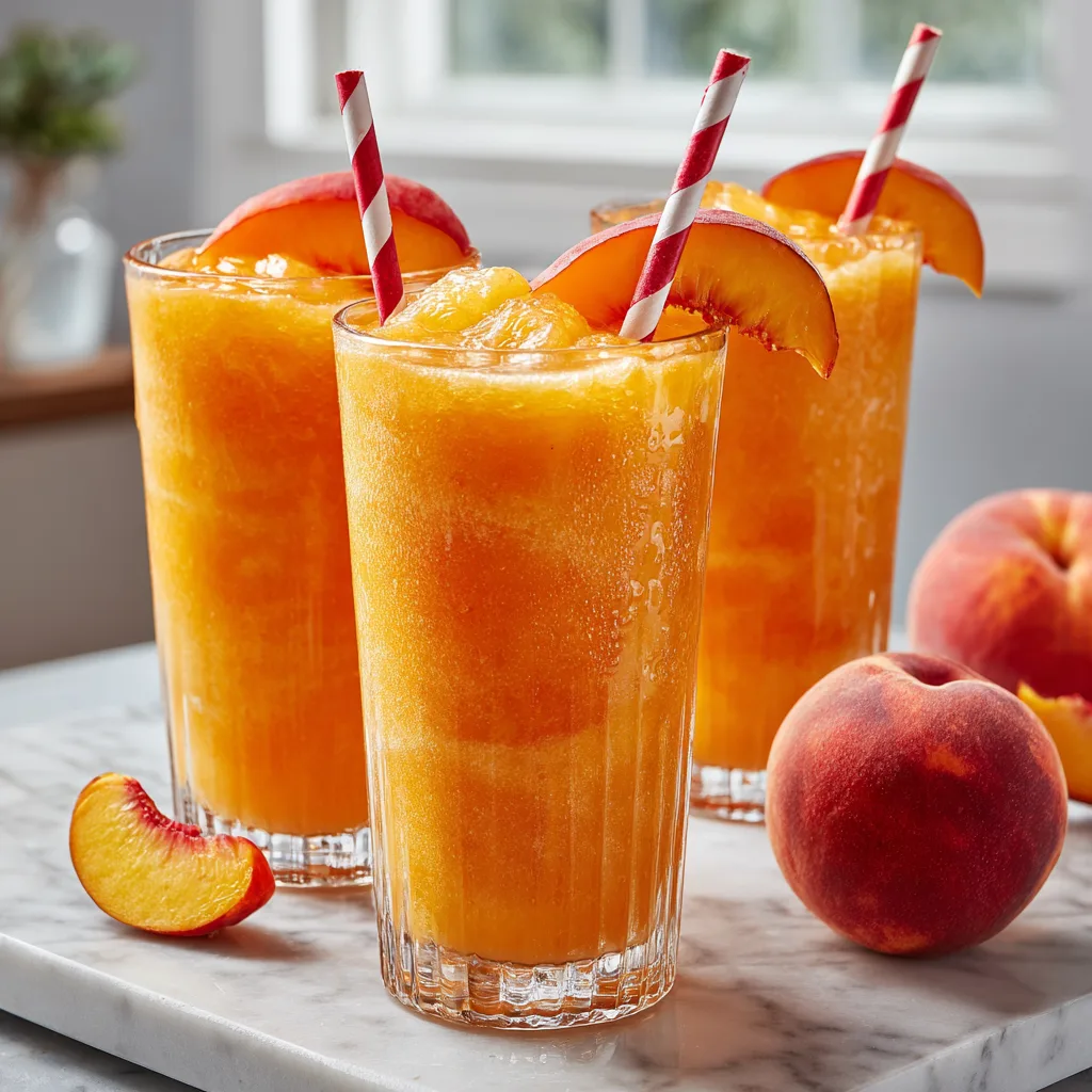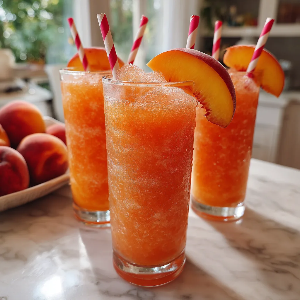 A sweet, frosty, and refreshing frozen peach drink made with simple ingredients, perfect for beating the summer heat.