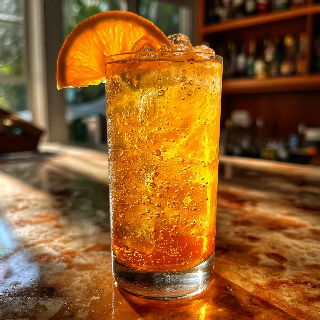 A refreshing and fruity whiskey cocktail featuring Irish whiskey, peach schnapps, ginger ale, and orange juice.