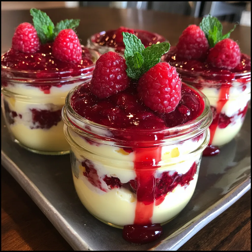 - Assemble the Layers: Grab 4 to 6 small glass jars or clear serving glasses. Spoon a layer of the mashed raspberries into the bottom of each jar. Follow with a generous layer of the lemon fluff. Repeat the layers—raspberries, then fluff—until the jars are filled, ending with a layer of the lemon fluff on top.