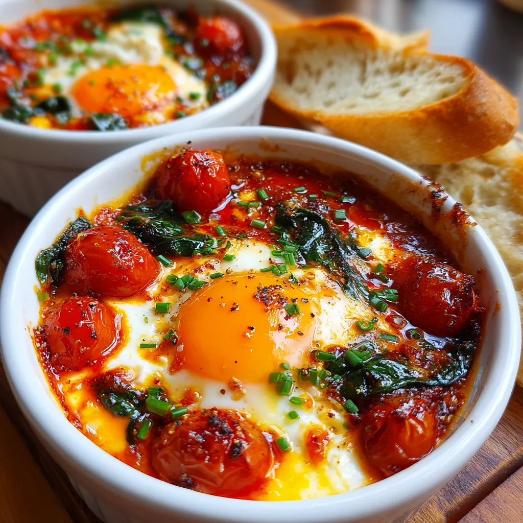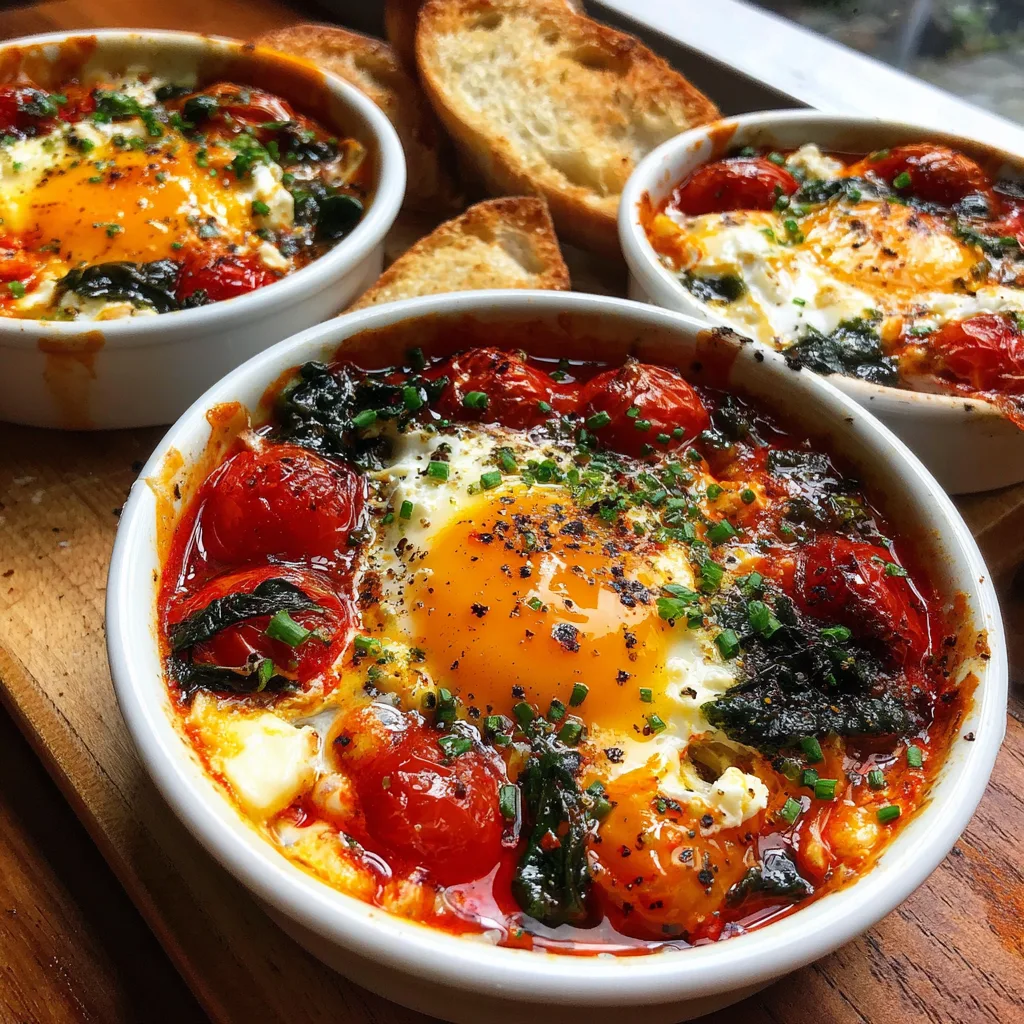 If there is one breakfast dish that bridges the gap between effortless comfort food and restaurant-quality brunch, it is these Mediterranean Baked Feta Eggs. Imagine a bubbling, savory tomato base, rich with garlic and herbs, studded with creamy chunks of salty feta cheese and ribbons of fresh spinach. Nestled right in the center is a perfectly baked egg, its white set just enough to hold the glorious, runny yolk that acts as a natural sauce. Served alongside crusty baguette slices or toasted sourdough, this dish is a textural masterpiece of “dip and scoop” delight.
