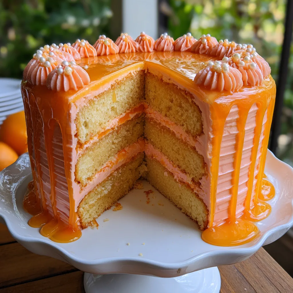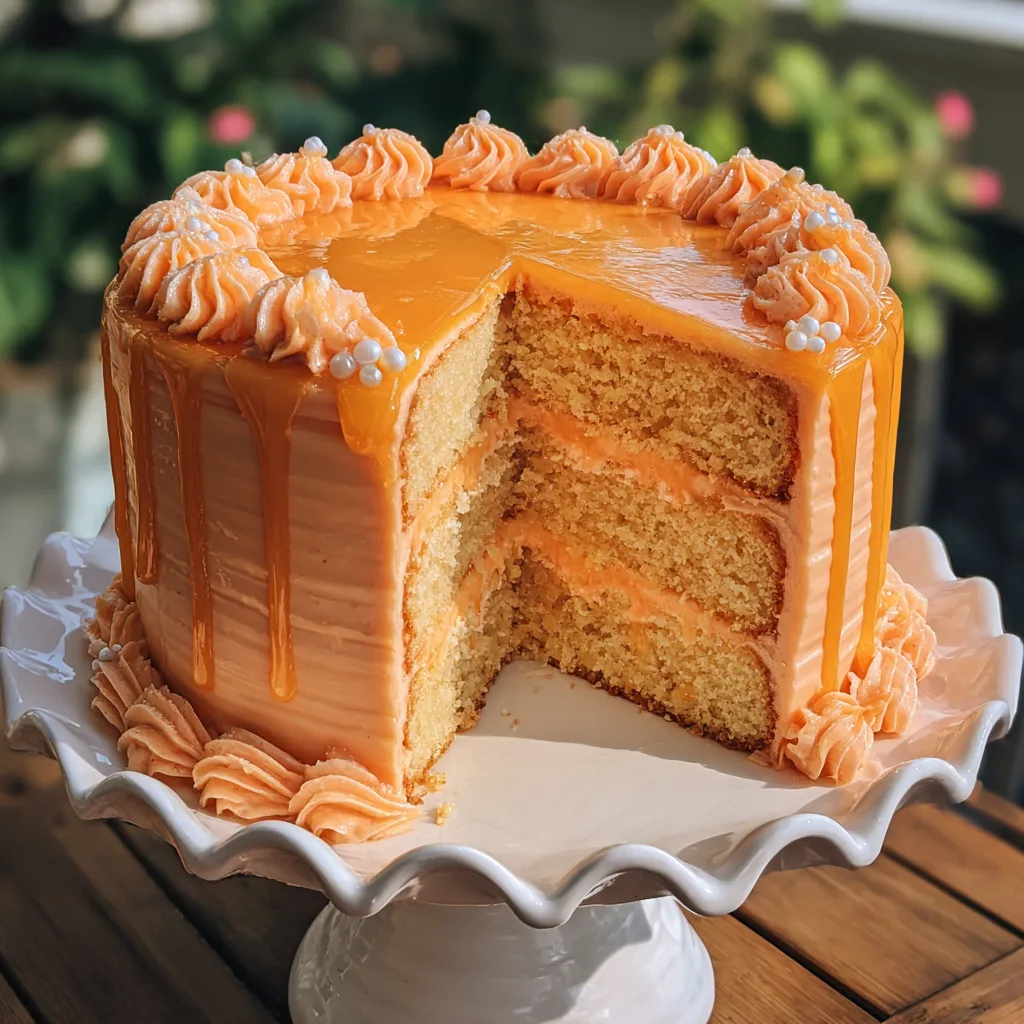 Creating a bakery-style layer cake at home might seem like a daunting task, but armed with the right techniques, high-quality ingredients, and a touch of patience, anyone can achieve a show-stopping result. This particular cake stands out not just for its phenomenal taste, but for its stunning visual appeal. The pale, sunny orange hue of the buttercream, textured with elegant horizontal ridges and bordered with classic piping, gives it a charming, slightly rustic, yet undeniably professional aesthetic. As you slice into it, the beautiful, even layers of sponge and frosting are revealed, promising a textural delight that melts in the mouth.