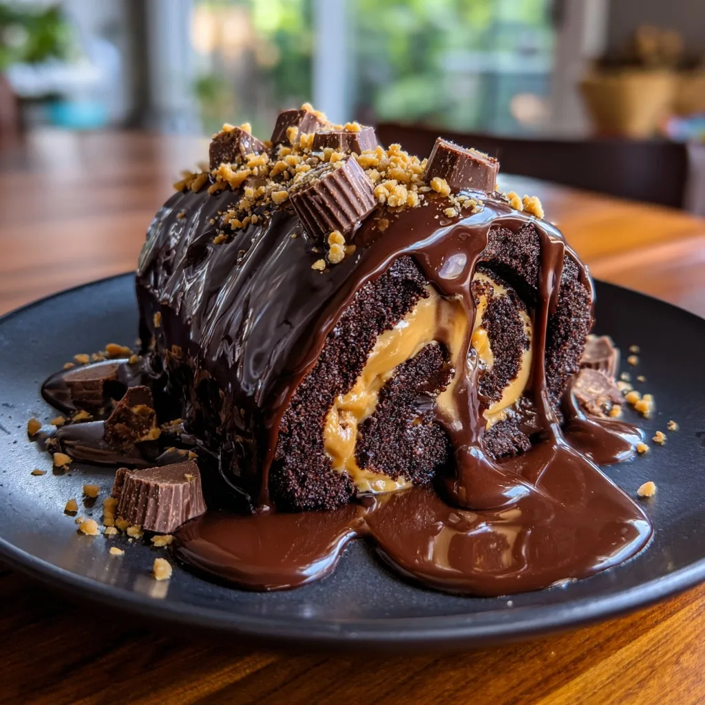 Beyond its stunning appearance, the texture is perfectly balanced. The chocolate sponge is inherently light and springy. Because it is a sponge cake, it does not rely heavily on fats like butter or oil for its structure; instead, it uses whipped eggs to achieve its volume. This lightness prevents the dessert from feeling overwhelmingly heavy, which is crucial because the peanut butter filling and chocolate ganache are quite rich. The filling itself is incredibly smooth, mimicking the exact interior of your favorite peanut butter cup candies, while the topping provides a satisfying, chunky bite. It is a symphony of flavors and textures that hits every single craving.