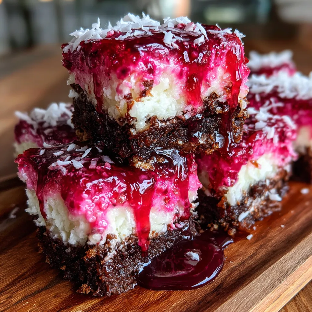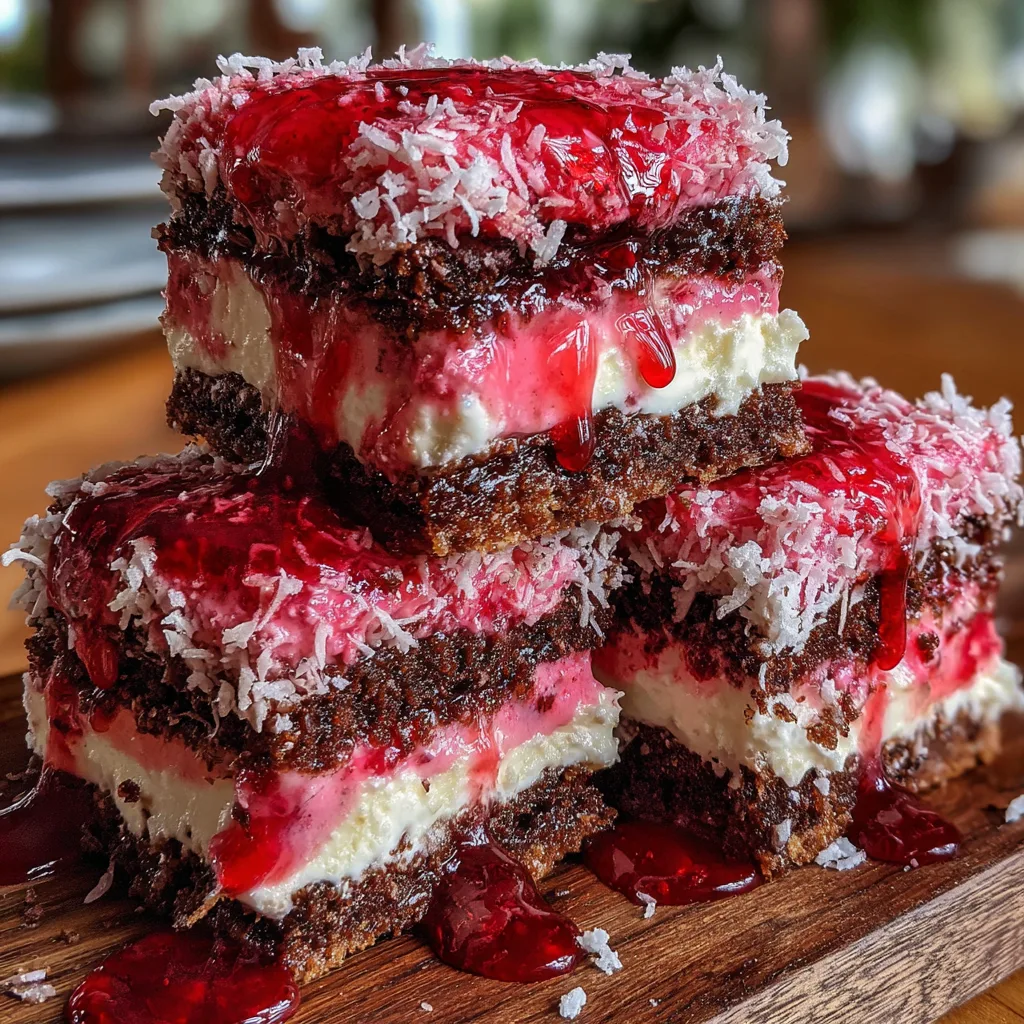 - Dark Chocolate Dip: For a “Bounty” bar twist, drizzle melted dark chocolate over the pink coconut layer before serving.
