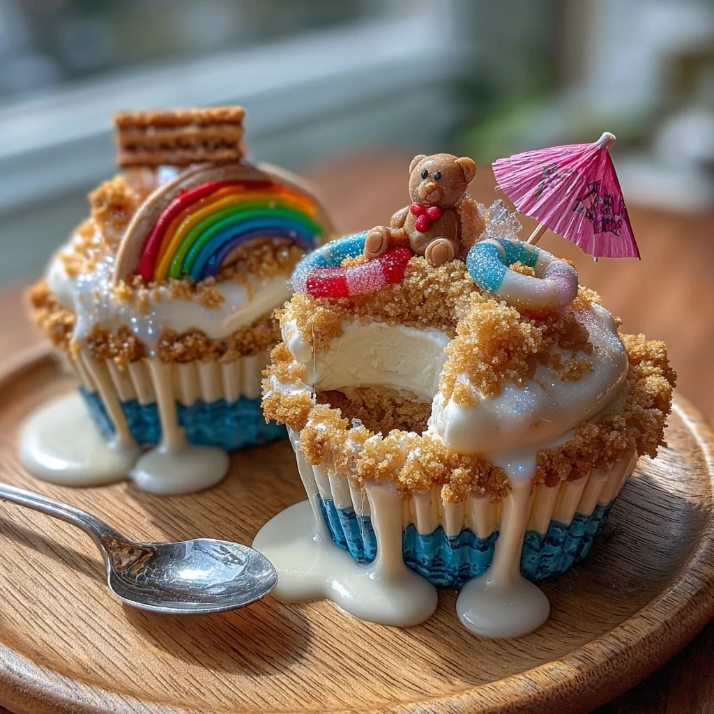 - Finish with Flair: Carefully open a tiny paper cocktail umbrella and insert it into the “sand” next to the Teddy Graham and life preserver. Adjust the angle so it casts a sweet shadow and looks inviting. Repeat the assembly process for each of your cupcakes, creating unique miniature beach scenes on every single one.