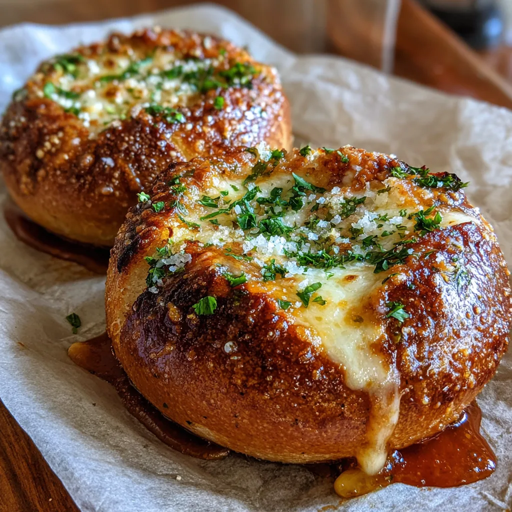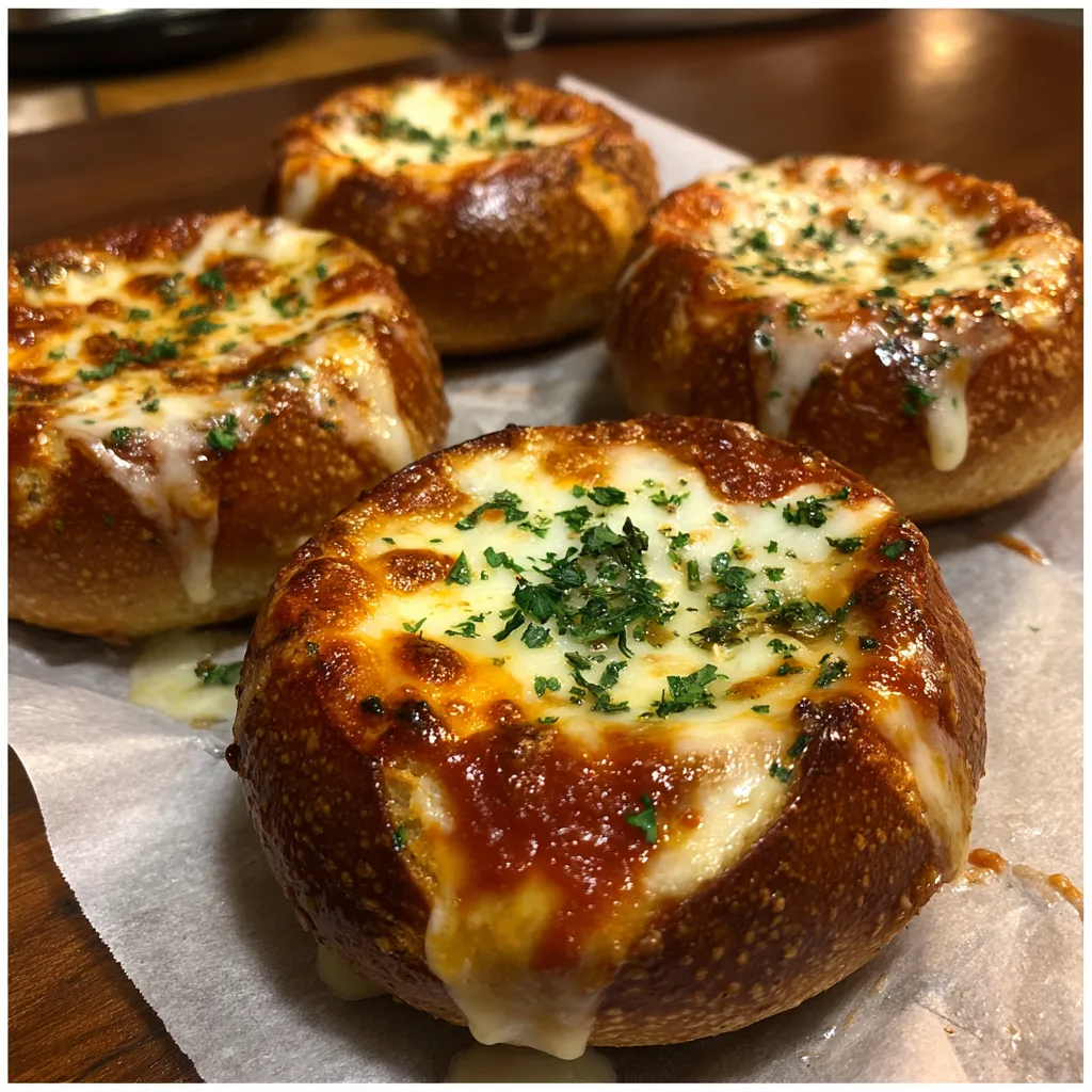 The structural integrity of your bowl is crucial. You want Hard Rolls, Kaiser Rolls, or small Sourdough Boules. Soft hamburger buns will not work—they will disintegrate under the wet sauce. You need a bread with a sturdy crust that can withstand the garlic butter and the baking process.