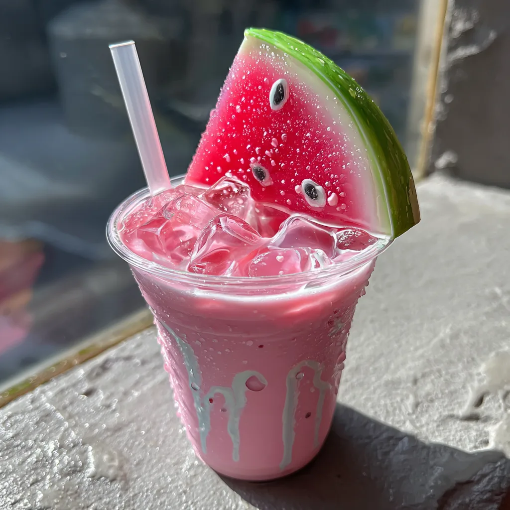 The addition of watermelon-shaped jelly provides a playful textural contrast. Unlike standard tapioca pearls (boba) which are chewy and dense, these gelatin or agar-based jellies are soft, cooling, and burst with flavor. They act as a “functional garnish,” providing both visual appeal and a secondary flavor experience as you navigate your straw through the ice.