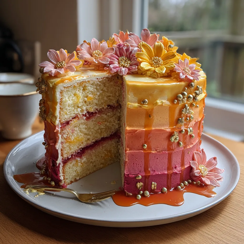 Creating the Sunset Ombre Floral Layer Cake is a truly rewarding culinary journey. By following these steps, respecting the techniques, and putting a little bit of your own creative flair into the decoration, you will yield a dessert that is not only a feast for the tastebuds but an absolute marvel to behold. Happy baking!