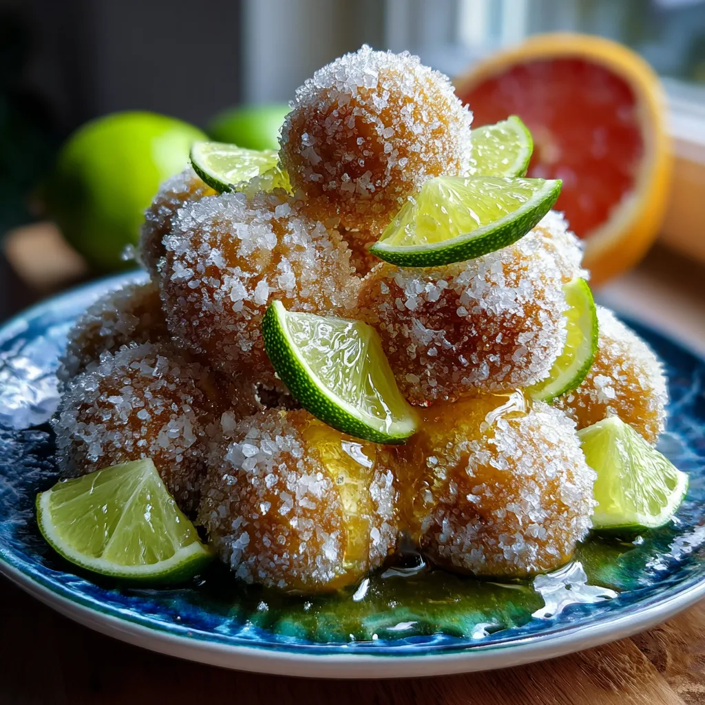 Golden, fluffy donut holes rolled in crunchy sugar and drizzled with a zesty lime syrup. A perfect sweet and tangy treat.