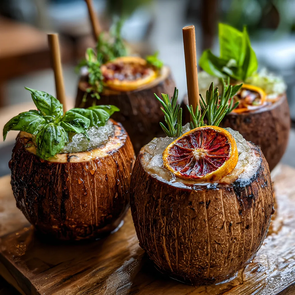 When we think of tropical drinks, we often think of overly sweet, syrupy concoctions. However, the modern palate craves balance. By using fresh coconut shells as our vessel, we tap into the natural sweetness of the coconut meat and water. Adding savory herbs like rosemary and basil creates a sophisticated profile that cuts through the tropical sugars, making it a “grow-up” version of a classic island punch.