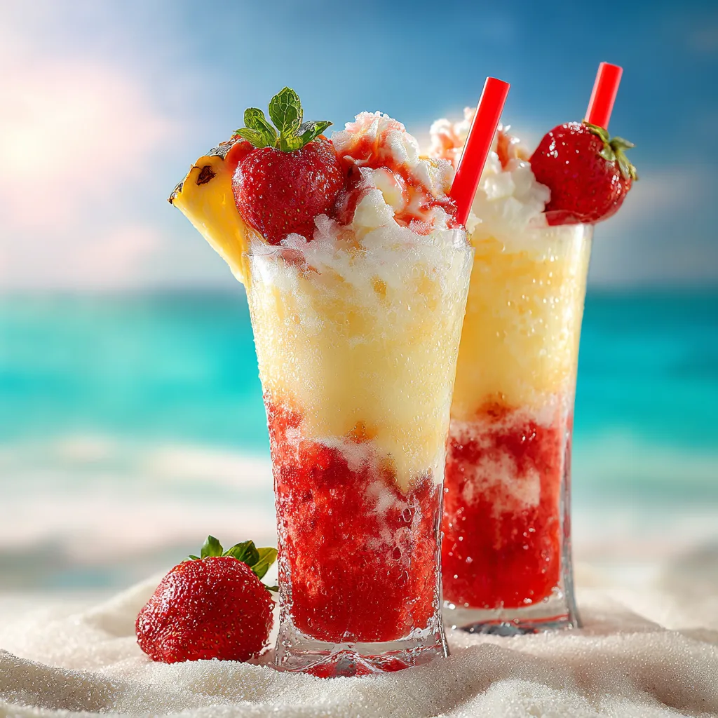 - Garnish and Serve: Immediately top each glass with a massive, generous mountain of fresh whipped cream. Cut a small slit into the bottom of your whole strawberries and pineapple wedges, and perch them proudly on the rim of the glass. Insert a bright red straw, and serve immediately while frosty and cold.