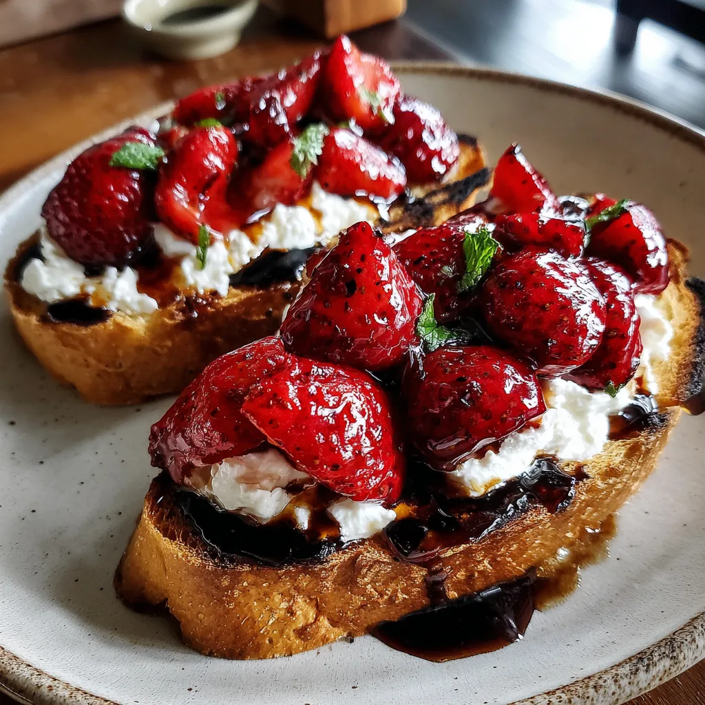 Imagine biting into a slice of warm, crusty sourdough bread. First, you hit the cloud-like layer of whipped ricotta, airy and infused with vanilla and honey. Then comes the burst of freshness from ripe strawberries, their natural sweetness amplified by a quick maceration in honey and balsamic vinegar. The balsamic adds a sophisticated depth and acidity that cuts through the rich cheese, while a sprinkle of fresh herbs ties it all together. It is an experience that feels indulgent enough for a special occasion but is simple enough for a Tuesday morning.